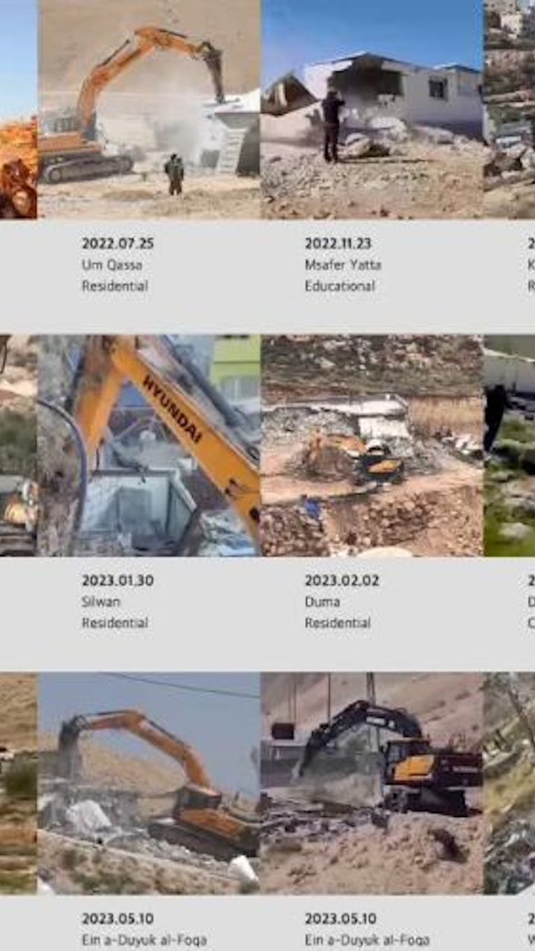 Deze bevindingen volgen op een onderzoek uit maart 2023 waarin Amnesty International en Democracy for the Arab World Now (DAWN) vijf gevallen documenteerden waarin Israëlische strijdkrachten Hyundai Construction Equipment graafmachines gebruikten (Hyundai CE) om Palestijnse eigendommen met de grond gelijk te maken. Hierdoor raakten ten minste vijftien Palestijnen ontheemd in Masafer Yatta, een gebied ten zuiden van de bezette Westelijke Jordaanoever waar Palestijnen leven onder de dreiging van massale verdrijving.