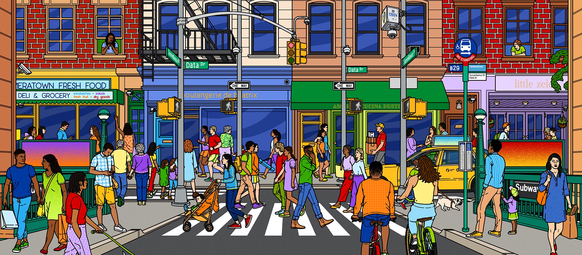 De technologie maakt het mogelijk om iedereen op straat in de gaten te houden en je persoonlijke gegevens te verzamelen, analyseren en bewaren, zonder dat je verdacht wordt van een strafbaar feit. Door daarna de beelden van camera’s te vergelijken met beelden op sociale media vervaagt de grens tussen online en offline.