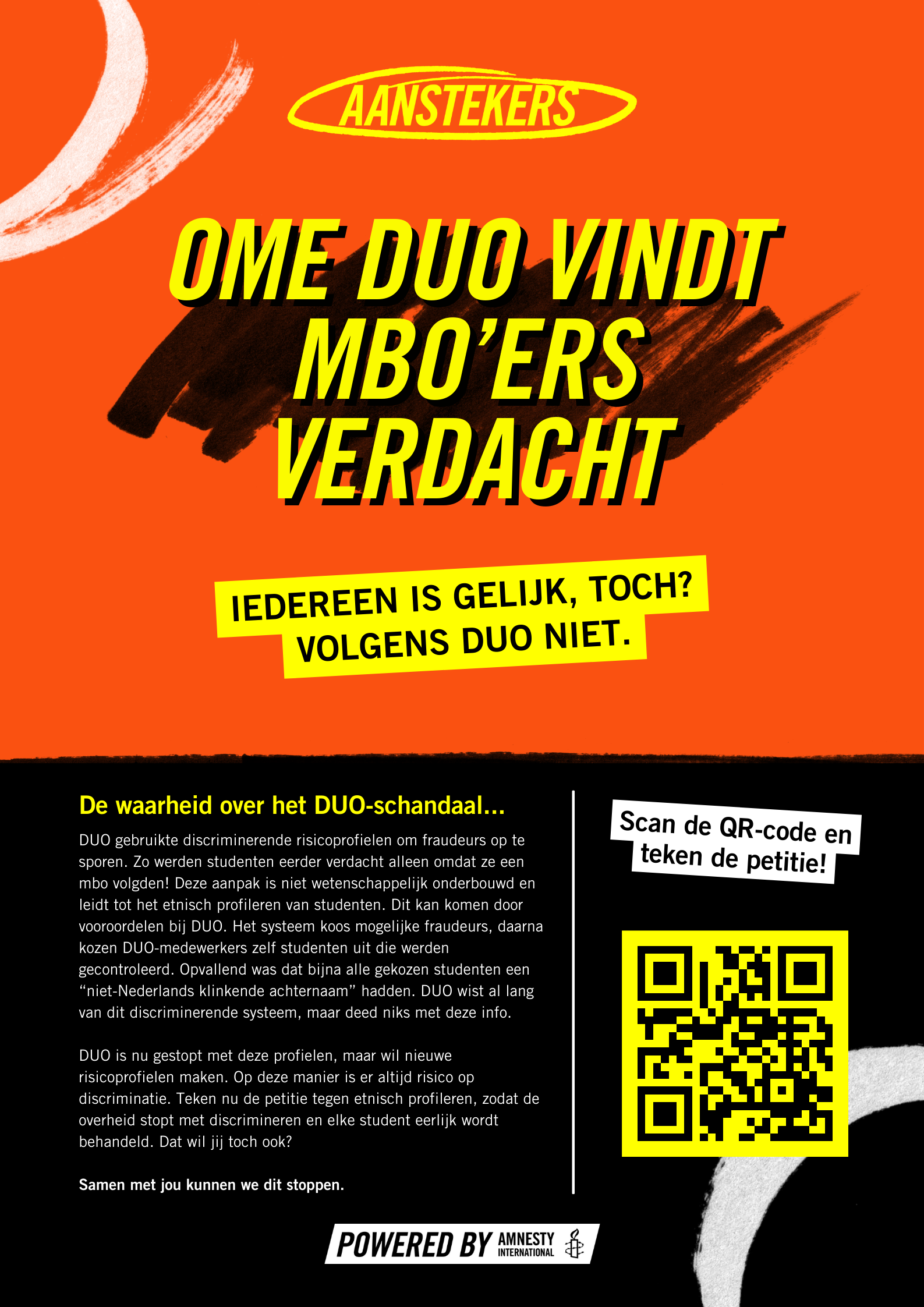 De Aanstekers zijn stagiaires die 5 of 6 maanden lang stage lopen bij Amnesty Nederland. Tijdens onze stage werken aan vele projecten en campagnes. Hiervoor maken bij posters, flyers, campagne-strategieën en deze webpagina. Heb jij interesse om stage bij ons te lopen bekijk hier wat jij allemaal kan doen.