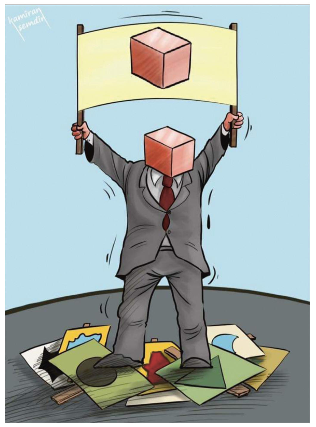 Kamiran Chemdin, getekend vanuit AZC Luttelgeest. Uit: De Gutmensch Scheurkalender 2021 (Uitgeverij Jurgen Maas) .