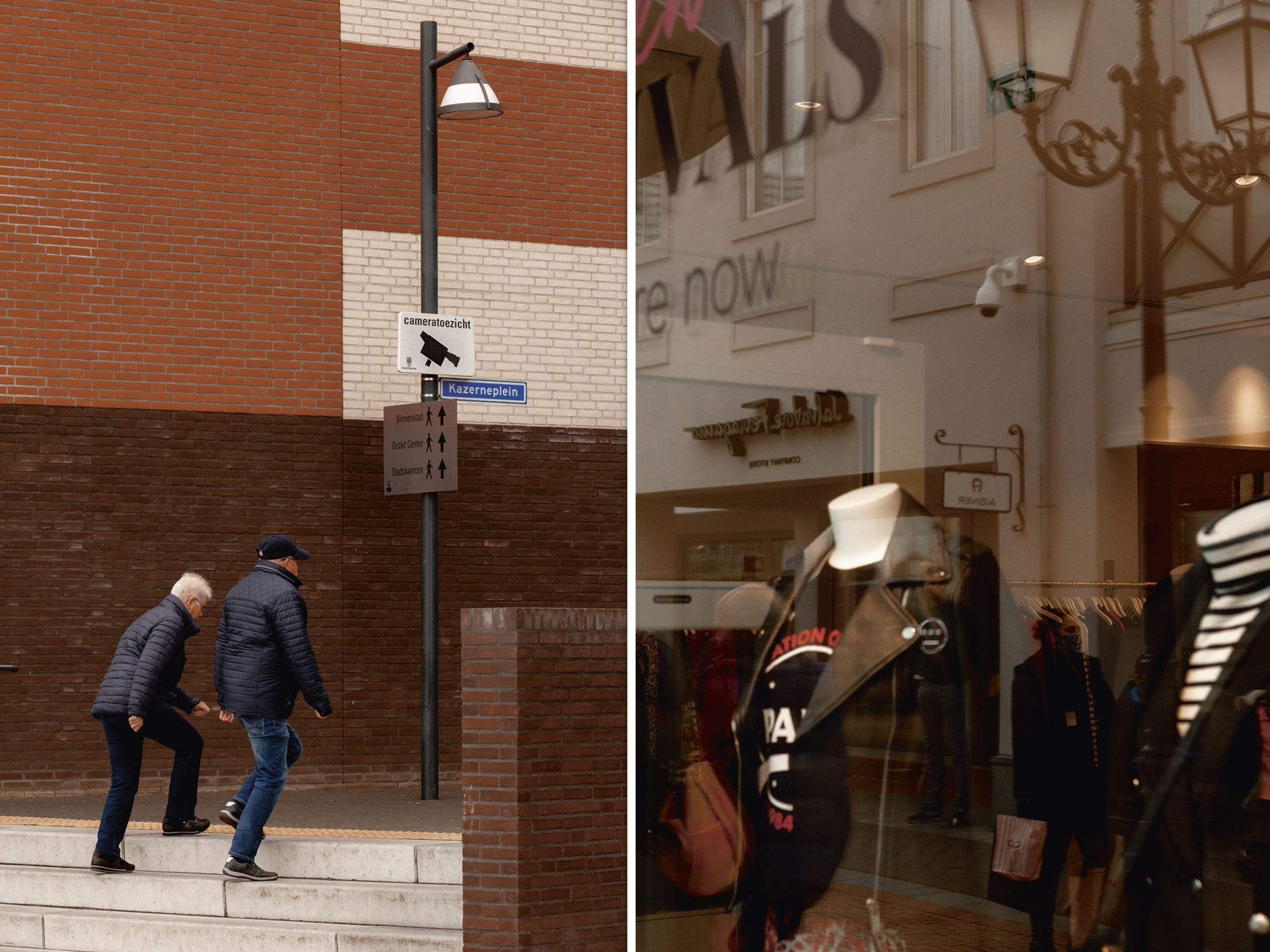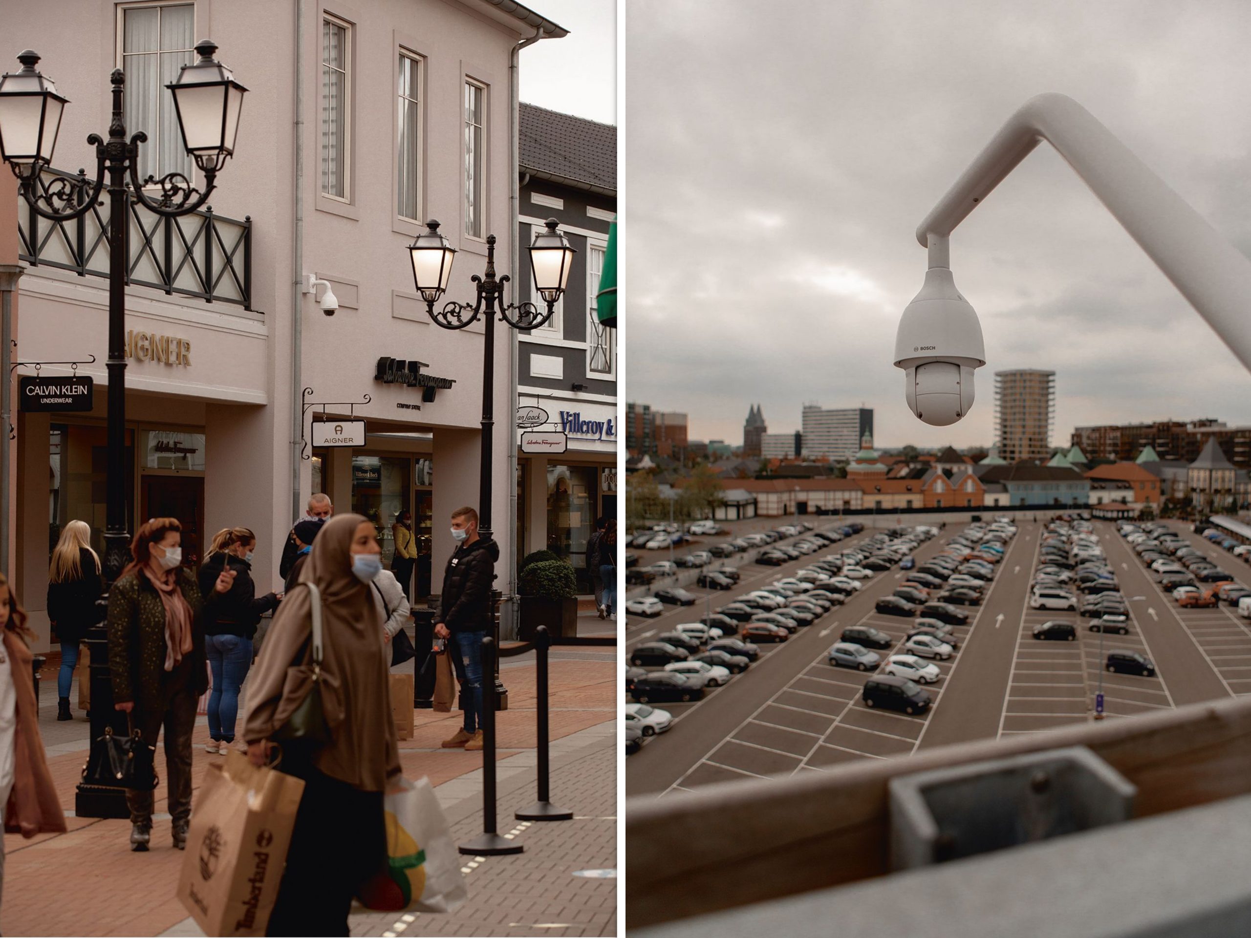 Ook door de week beginnen de oefeningen in geduld al buiten de Designer Outlet. Dan is de toestroom van dagjesmensen zo groot dat er files staan op de toegangswegen. Langzaam opschuivend richting het koopwalhalla zullen de nodige inzittenden opmerken dat ze in de gaten worden gehouden. Roermond hangt vol bordjes waarop in woord en beeld wordt geattendeerd op cameratoezicht. De logo’s van vertrouwenwekkende instanties als de gemeente en de politie staan erop.
