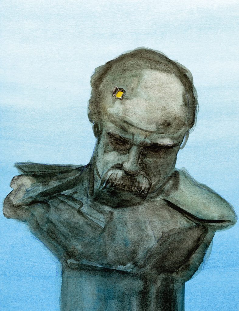 In Cherson werden niet alleen Poesjkin-billboards opgehangen; er werden ook Oekraïense schoolboeken verwijderd uit scholen en bibliotheken, Oekraïens als taal werd verboden en bustes van de Oekraïense nationale dichter Taras Shevshenko werden opgeblazen. In de stad Irpin, die in 2022 tijdelijk werd bezet door de Russen, zag ik tijdens een werkbezoek dat er een kogel door een buste van deze dichter was gejaagd, recht door zijn hoofd. De boodschap leek duidelijk: dood aan de Oekraïense nationale literatuur.
