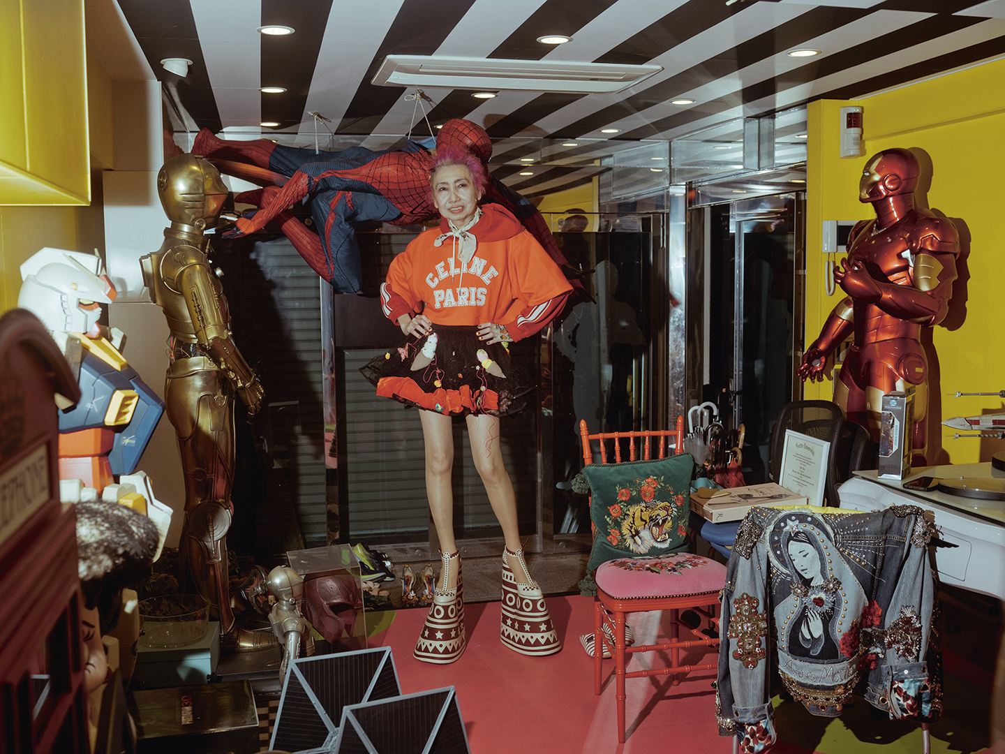 Hakken van minstens dertig centimeter hoog, een knaloranje shirt en een heel kort rokje. ‘Granfluencer’ Eriko Yagi (66) omhult en omringt zich alleen maar met spullen die ze zelf mooi vindt. Trots kijkt ze de camera in, geflankeerd door twee glanzende harnassen, in haar huis in Tokio.