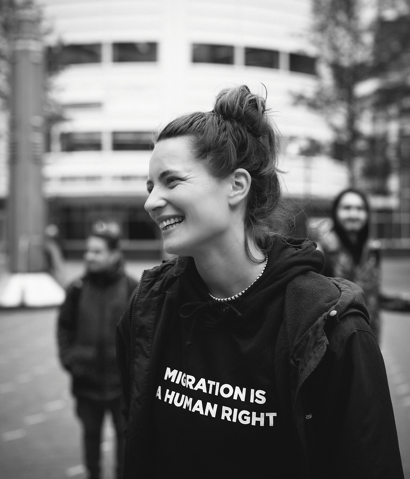 ‘Mijn grootste privilege is mijn nationaliteit. Dat merkte ik pas toen ik zag hoe mensen van andere nationaliteiten worden behandeld. Toen ik in Bosnië werkte, zag ik mensen zwaargewond terugkomen van de grenzen. De grensbewakers deden dingen die als marteling kunnen tellen. Dan voelt het heel gek om ze alleen een dekentje en warme maaltijd te kunnen geven. We zagen dat het meer een politiek en juridisch probleem was dan alleen een situatie van zielige mensen die niet voor zichzelf kunnen zorgen. Uiteindelijk zijn we Bosnië uitgezet omdat men bang was dat vluchtelingen door onze hulp zouden blijven. Als hulpverleners werden we gecriminaliseerd. Toen zijn we begonnen met ons activisme.’