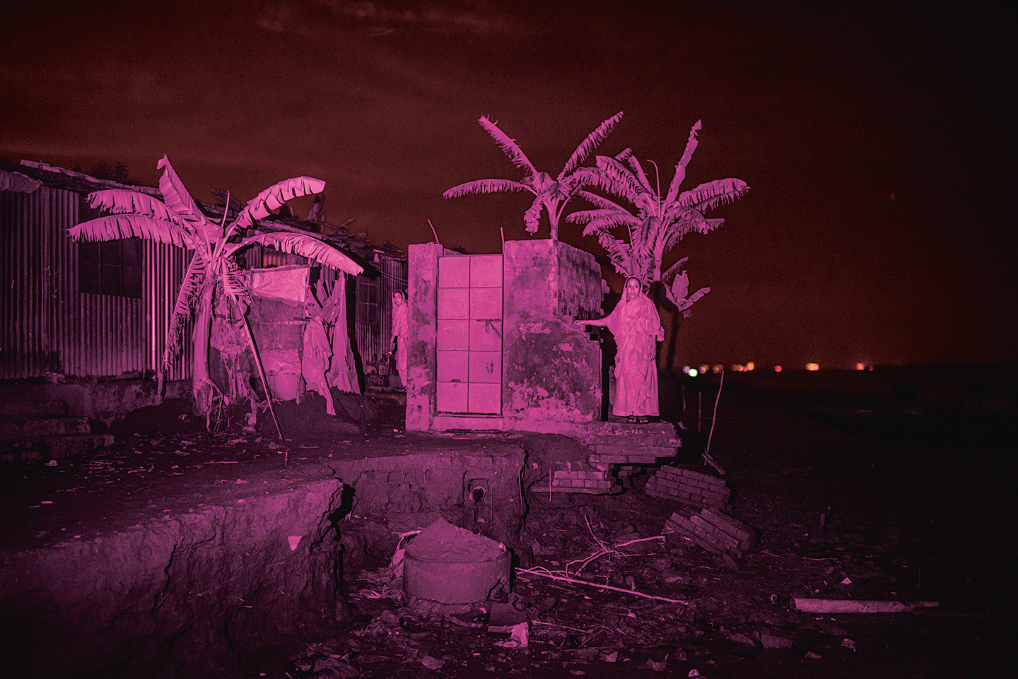 De Indiase fotograaf en kunstenaar Arko Datto komt uit Kolkata. Met deze fotoserie, onderdeel van een groter project dat momenteel in het Fotomuseum Den Haag is te zien, probeert hij zijn angst uit te drukken voor zijn toekomst en dat van zijn dierbaren en lotgenoten. Hij maakte de avondbeelden met een experimentele infraroodcamera. Ze kregen zo allemaal een dreigende, paarsrode gloed die je het gevoel geeft dat de apocalyps op uitbreken staat. En misschien is dat ook wel zo, voor deze mensen.