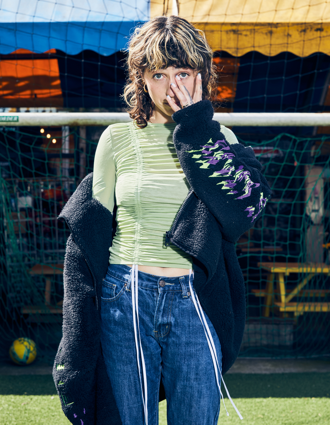 Gaza is ook heel aanwezig op het tweede album van Sophie Straat, een van de boegbeelden van de Nederlandse protestmuziek. Straat stapte over van fotografie naar muziek toen ze op de kunstacademie gehoord had dat mensen gemiddeld maar vier seconden naar een foto kijken. Met haar sociaal geëngageerde liedjes weet ze de aandacht langer vast te houden. Het nieuwe album, Wie de fak is Sophie Straat?, staat vol scherpe songs over grote onrechtvaardigheden. Tierend, fel, lief en soms ontgoocheld zingt ze over thema’s als genocide, politiegeweld, het Nederlandse zelfbeeld en de grote lijnen die daardoorheen lopen: kapitalisme, racisme en genderongelijkheid. Met teksten die zich in je hoofd nestelen, zoals in het nummer ‘Vlinder’: Geloof je nog in vrijheid / als in Rafah de grond trilt?