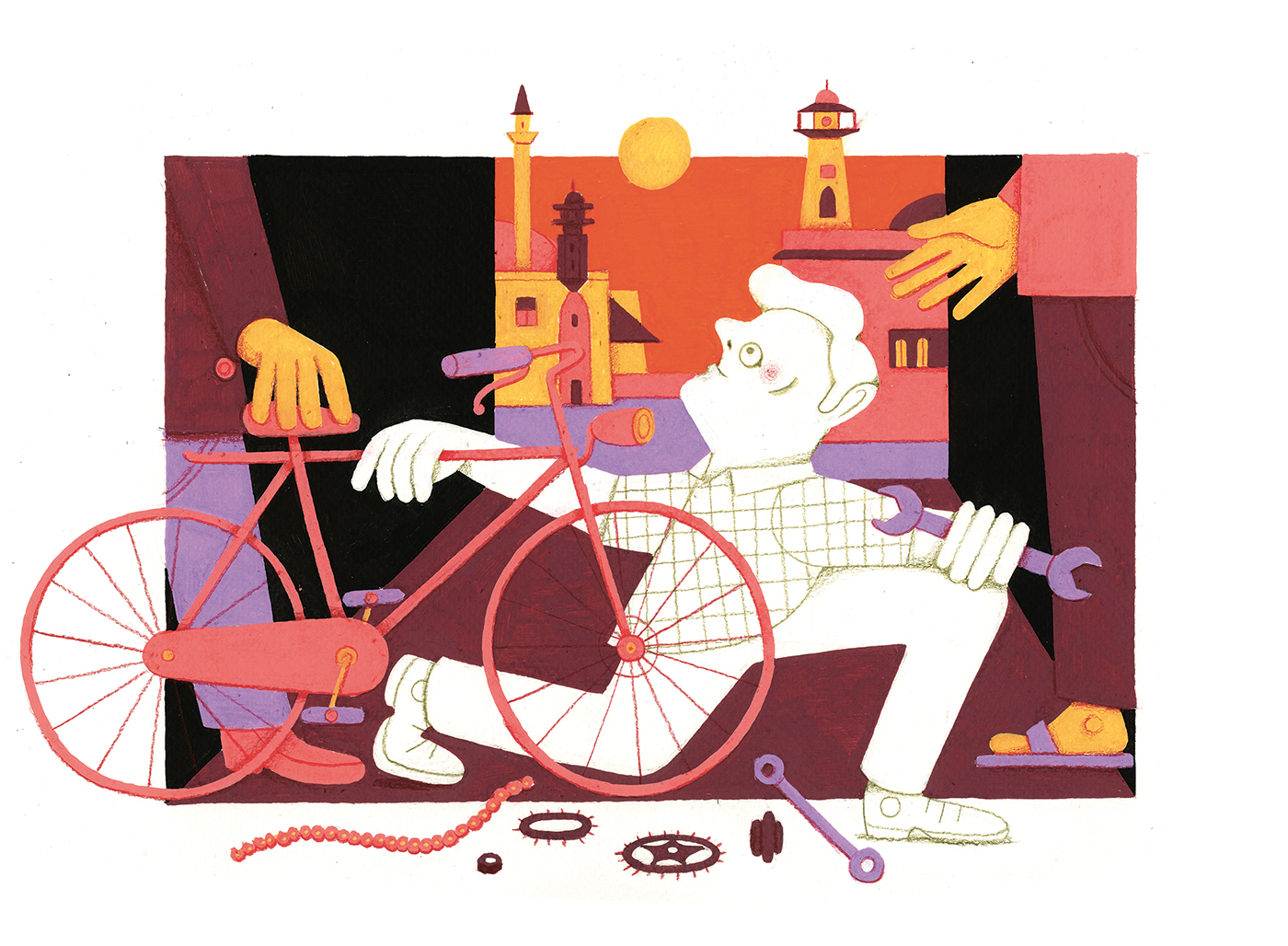 Daan is ontzettend geliefd bij de winkeleigenaar in het oude Damascus. Zijn baas, Abu Talib, is een bejaarde, grijze man met een dikke, witte baard en haar dat uit zijn neus steekt. De laatste tijd, met name sinds hij Daan in dienst nam, is hij veel aangekomen. Sindsdien is Abu Talib gestopt met het repareren van fietsen en zit hij de hele dag te kletsen met de buren, die specerijen verkopen in hun soek. Vol trots verkondigde hij laatst hoe blij hij was met zijn nieuwe werknemer, ook al werkte Daan er al drie jaar. Hij zei dingen als: ‘De handen van deze Nederlander zijn ervoor gemáákt fietsen te repareren’; ‘God mag weten wat de Syrische jeugd van tegenwoordig bezielt, ze willen allemaal in de technologie werken, met robots’; ‘jeetje zeg, we hebben wel een hoop aan die vluchtelingen te danken, dat zij de baantjes willen waar Syriërs hun handen niet aan vuilmaken’.